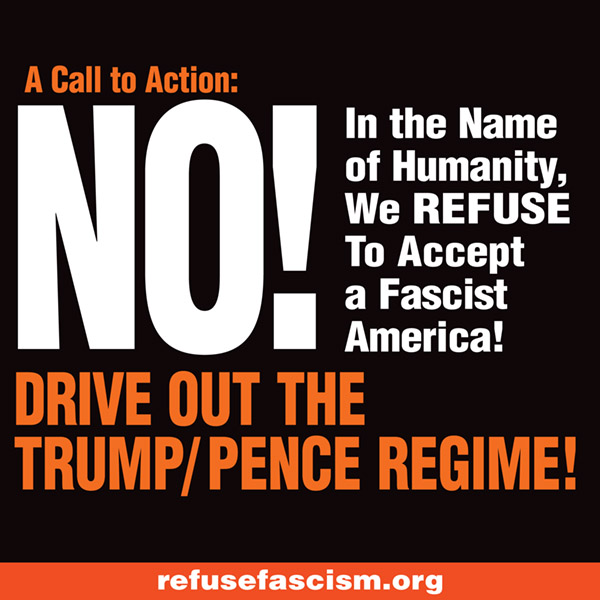 NO! In the Name of Humanity – We Refuse to Accept a Fascist America Setting Out February 25th through March “The Trump/Pence Regime is a Fascist Regime. Not insult or exaggeration, this is what it is. For the future of humanity and the planet, we, the people, must drive this regime out… “Fascism has direction […]