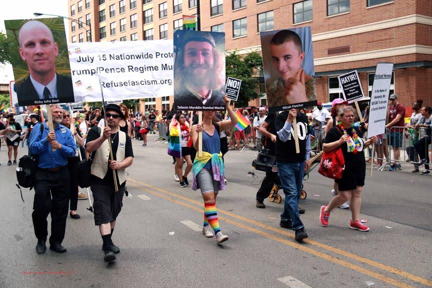 June 27 Refuse Fascism marched in Chicago’s annual Gay Pride Parade. The Refuse Fascism contingent drew an excited, boisterous and often theatrical response from thousands of people lining the parade route. The contingent had rainbow NO! signs, a banner saying “July 15 Nationwide Protests – Trump/Pence Regime Must Go!, Refusefascism.org”. A crew carryied portraits of […]