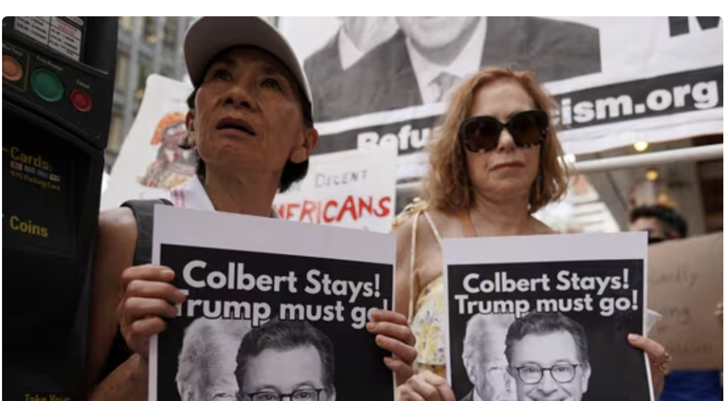 Reuters: Protesters Rally as CBS Cancels Colbert’s Late Show
