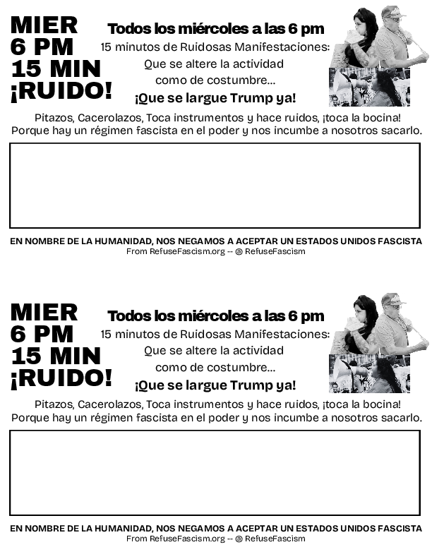 Flyers: 15 Minute Noise demonstrations (Spanish half-page)