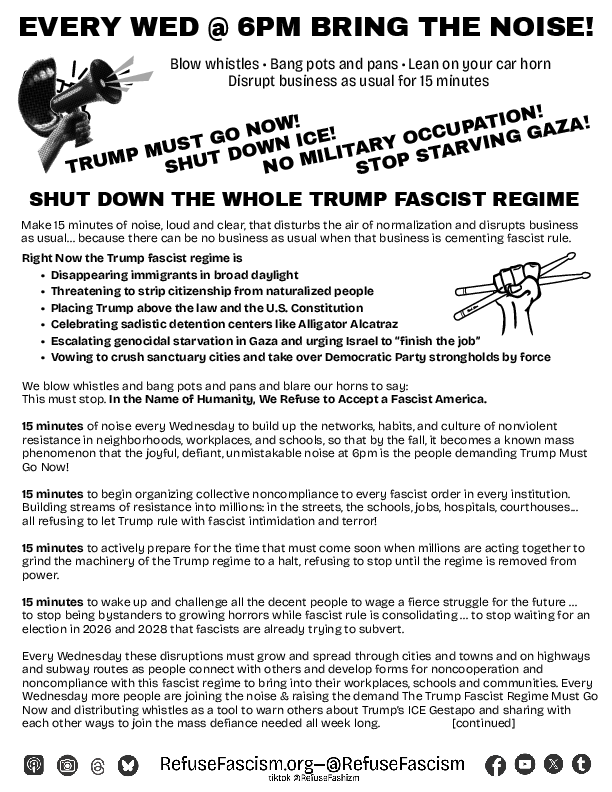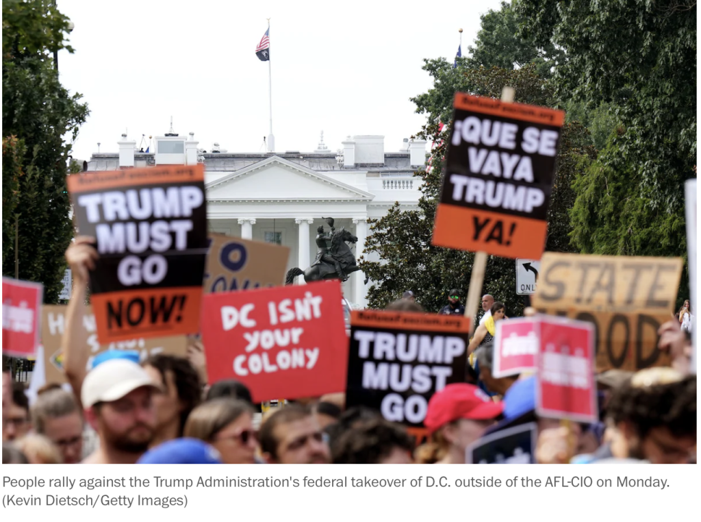 On Monday, August 11, people in DC took to the streets to protest Trump’s fascist takeover of the capital. Stay tuned here for ongoing developments, and join with nonviolent resistance in DC and everywhere! Protest! Saturday, August 16 at 2pm, Dupont Circle, Washington DC Wednesdays at 6pm, everywhere: Bring the Noise Demonstrations – Bang pots […]