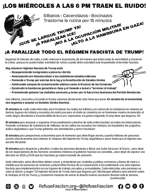Flyers: 15 Minute Noise demonstrations (Spanish 8.5×11)
