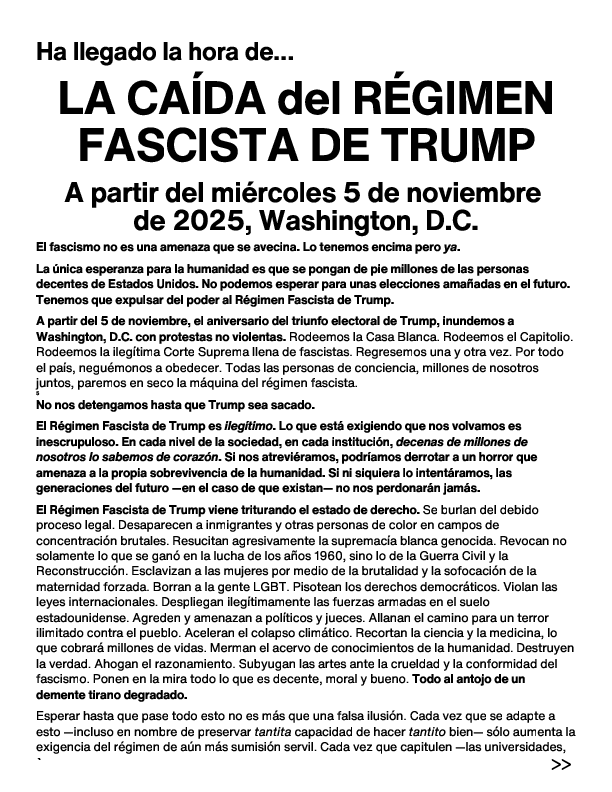 The Time Has Come For… The Fall Of The Fascist Trump Regime Beginning Nov. 5, 2025 Washington DC (Spanish, 2-sided)