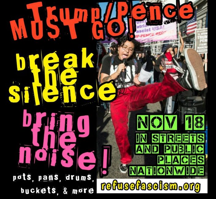 Bring the noise of a student & youth movement that is ACTING to STOP the CRIMES of the Trump/Pence Regime!#TrumpPencemustgo pic.twitter.com/BPTcj3aifc— #TrumpPenceMustGo (@RefuseFascism) November 15, 2017