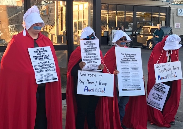 Handmaids reading 10 indictments of Roy Moore in Chicago:pic.twitter.com/xIc0oAY428#NoMoore #NoFascistUSA #VoteDougJones