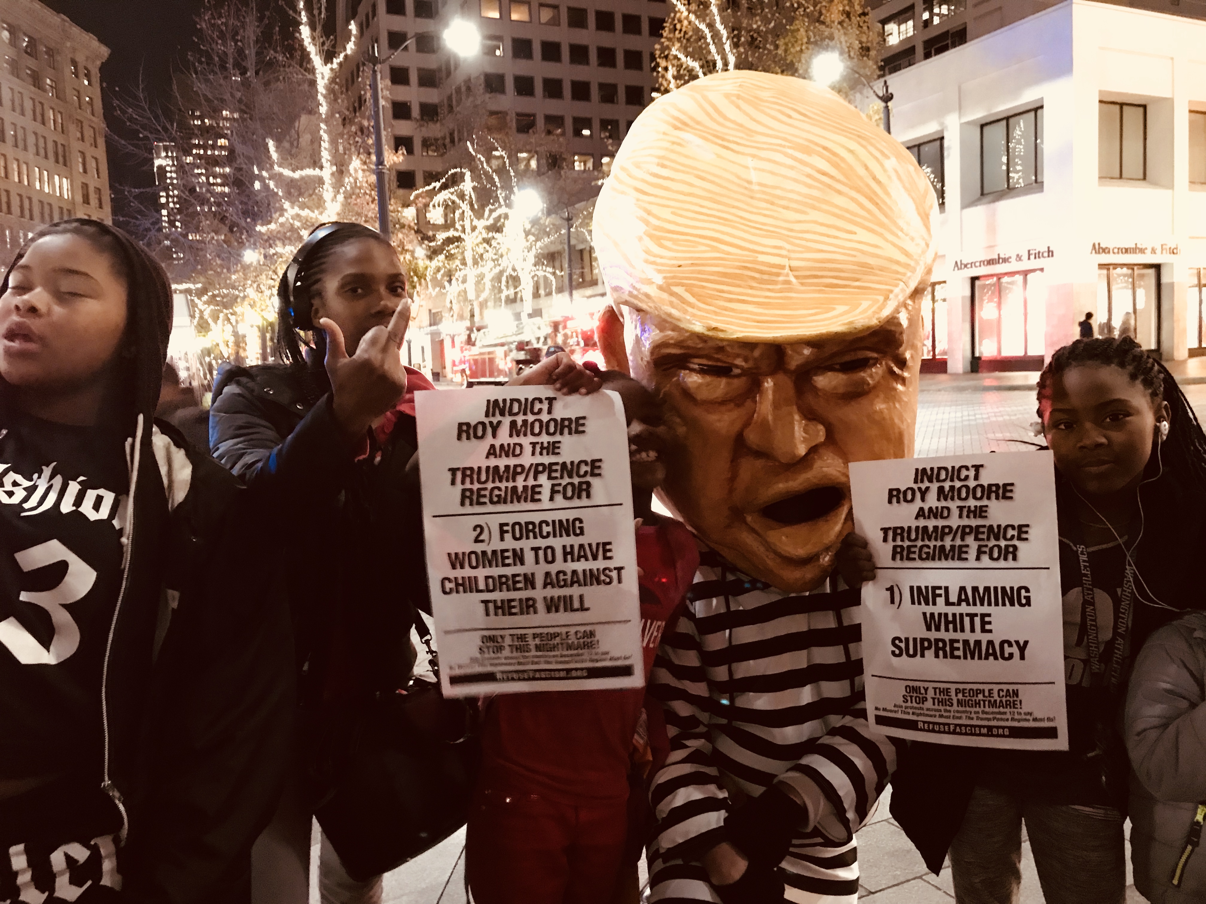 Refuse Fascism called for protests on Tuesday December 12, when the election took place in Alabama between Republican Roy Moore and Democrat Doug Jones.