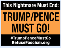 RefuseFascism.org is a movement of people coming from diverse perspectives, united in our recognition that the Trump/Pence Regime poses a catastrophic danger to humanity and the planet, and that it is our responsibility to drive them from power through non-violent protests that grow every day until our demand is met. This Nightmare Must End: The Trump/Pence Regime Must Go!