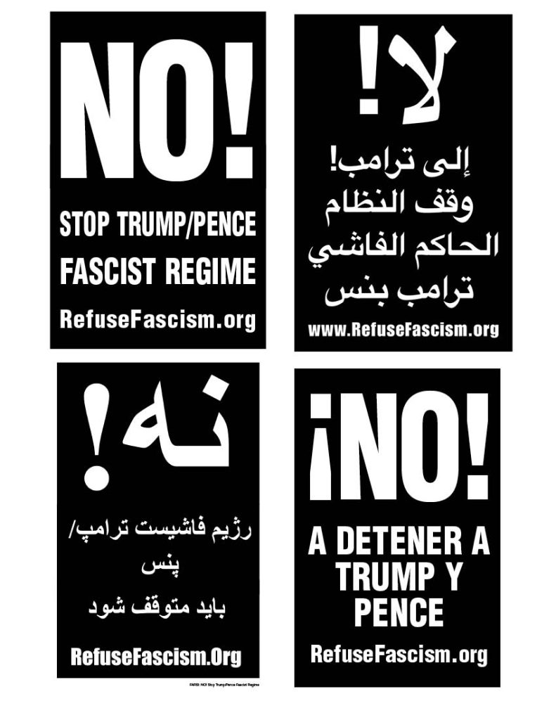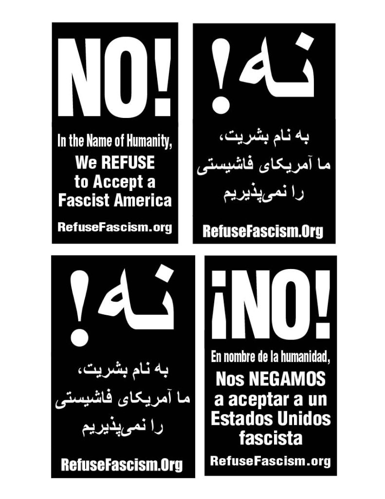 On Friday February 10th, print out NO! posters and take them with you everywhere you go. Ask local businesses to put them in their windows, put them up at your workplace, at the doctors office, in your apartment buildings, on your campus, in your neighborhood. Take photos and post them on social media under the hashtag #NoFascistUSA