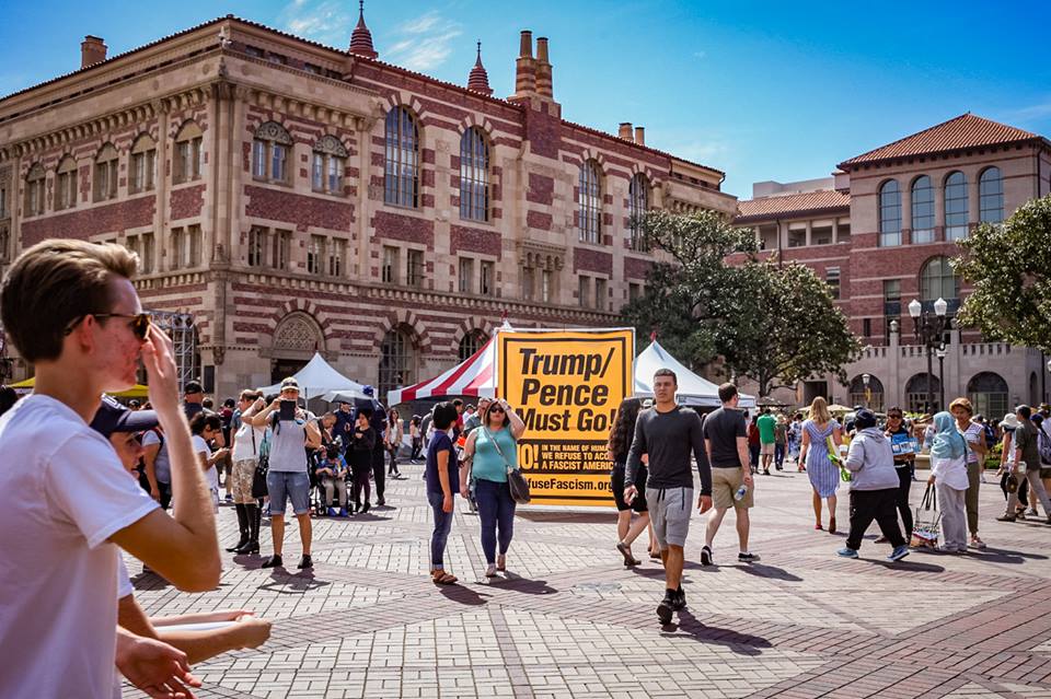 Refuse Fascism went to the LA Times Book Festival at USC this past weekend. We worked with the Revolution Club in Los Angeles, who focused on promotion of the Bob Avakian talk, THE TRUMP/PENCE REGIME MUST GO! In The Name of Humanity, We REFUSE To Accept a Fascist America: A Better World IS Possible! Overall, we approached the event as a great opportunity to accelerate the forging of a movement aimed at driving out the Trump/Pence regime ASAP – achieved through a multi-dimensional approach (utilizing different forms) with an orientation of reaching and impacting very broad sections of society.