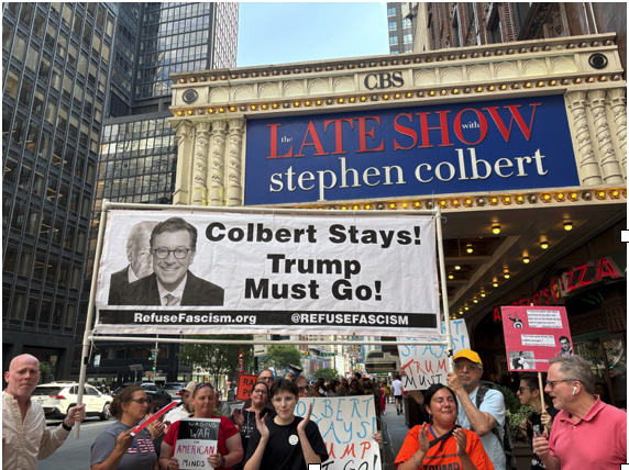 CBS News NYC: https://test1.midstransfer.com/recent-media/cbs-news-crowd-gathers-in-nyc-to-protest-canceling-of-the-late-show-with-stephen-colbert/