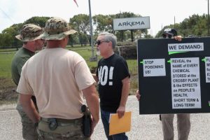 Travis Morales, an activist from New York City, held a news conference in Crosby on Monday, accusing the company of “poisoning” the community and demanding free medical care in the aftermath of the blazes. Some locals shared his concerns as they moved back into their homes early Monday.