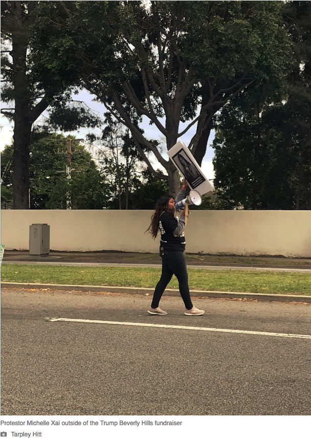 Michelle Xai … carried two signs, each with the names and images of children who died in Border Patrol custody. She was there on behalf of RefuseFascism.org, an activist organization which conducts sustained nonviolent protests at Trump-related events.