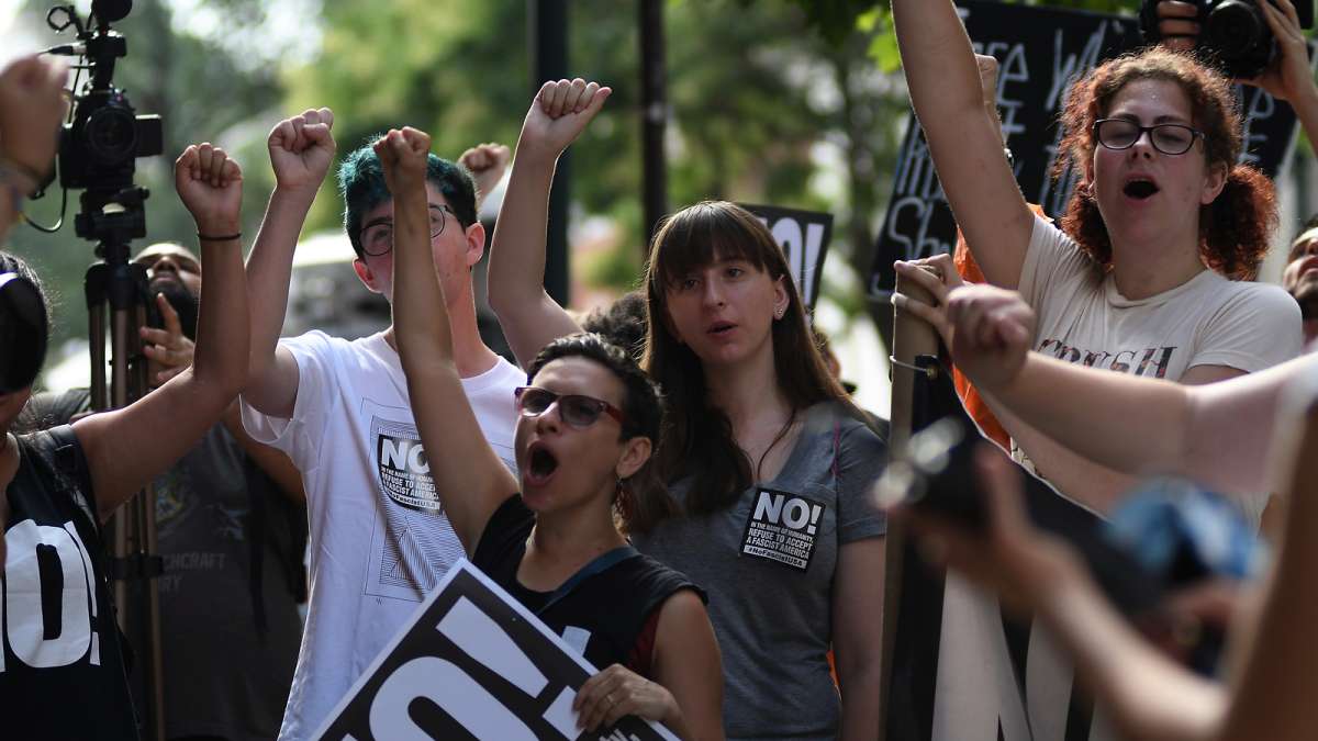 July 21 Refuse Fascism featured in photos, article, and audio on Newsworks.org “About 40 protesters rallied outside as Sessions spoke, chanting “No Trump, no KKK, no fascist USA!” and “no ban, no wall, the Trump regime has got to fall!” They carried signs with slogans including: “Those who forsake liberty for security shall have neither” and “America was never great! We need to overthrow the system!” Many of the activists were with a New York City-based group called Refuse Fascism. As Sessions prepared to take the podium at 11 a.m., the protesters spilled off the sidewalk and blocked the street.” Read, listen and view
