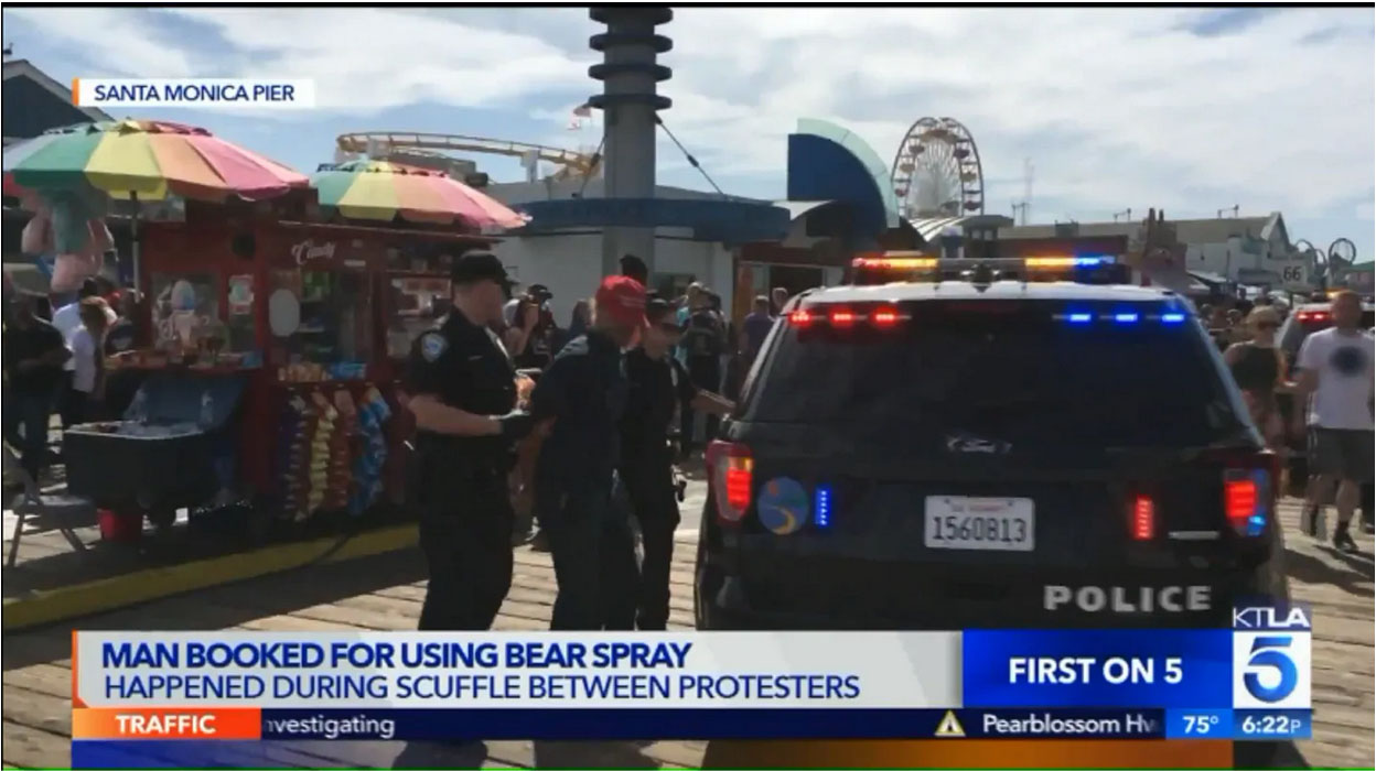 A small group of Trump supporters followed the leftist protesters to the pier. The groups exchanged insults for about 10 minutes, police told the Los Angeles Times, before shoving one another and screaming obscenities.