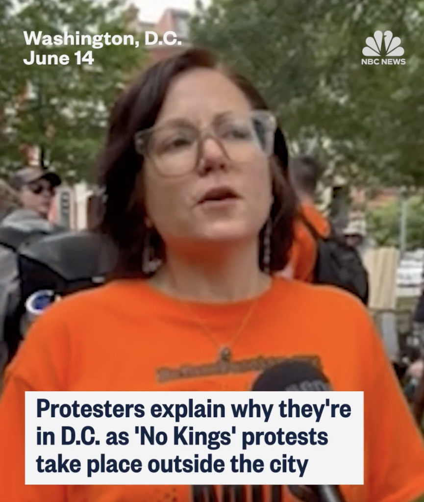 This report from NBC opens with Sunsara Taylor speaking about the June 14 protest in DC – on the day of Trump’s military parade. Sunsara said that while she was thrilled that so many people were standing up to the Trump regime across the country, she disagreed with those who discouraged people from protesting in DC. “They are wrong,” she said. The reporter showed a video clip of Refuse Fascism’s march towards the White House. Close to the end, Sunsara Taylor appeared again, speaking on the significance of specifically protesting in DC, saying “that’s where the eyes of the world will be” and where Trump had issued a threat against protests. One protestor from LA spoke about the dire situation of the immigrant community there, and considered it important to come all the way to DC to protest.