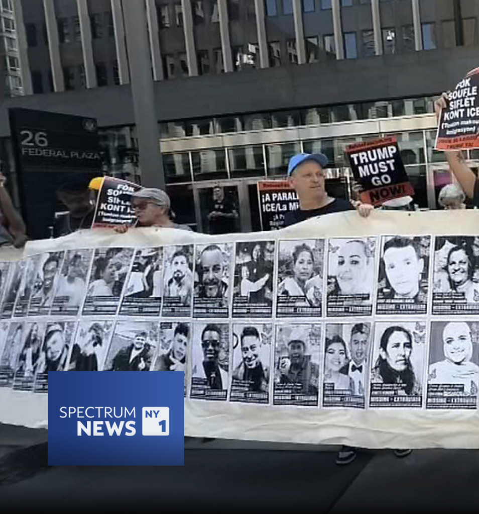 A lunchtime rally was held in front of 26 Federal Plaza in Manhattan on Monday.