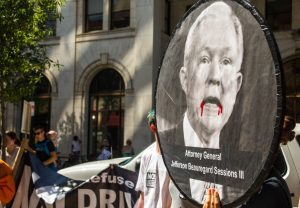 Sessions, flowing from his thoroughly racist worldview, is a proud crusader in the effort to wipe the (already extremely limited) protections that sanctuary cities offer completely off of the map. A round of I.C.E. raids in Philadelphia arrested almost 250 people in February/March. In statements to the press after Sessions spoke at the Attorney’s Office, Democratic Mayor Kenney “pleaded the 4th” so to speak (referring to his nod to the constitutional amendment that requires a warrant to hold someone in custody), and police commissioner Richard Ross insisted the real source of crime was from (in his words) Philly’s own “young troubled men”. This is a part of the overall fierce contention going on among the ruling forces – the “struggle at the top” as we’ve formulated it – and how we fought on our terms from the perspective of ushering in a mass movement from below to drive the fascists out of power.